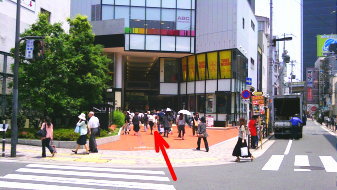 32.横断歩道を左に渡り、さらに右へ渡ります。