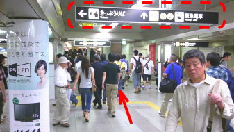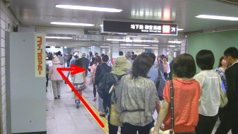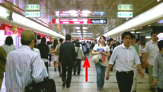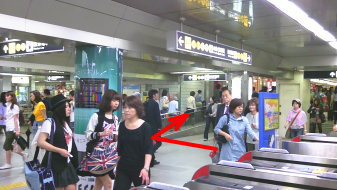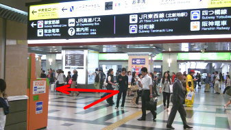 10.御堂筋線梅田駅の切符売り場と改札口の間を抜けて直進します。