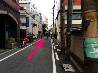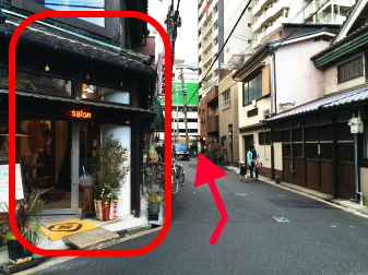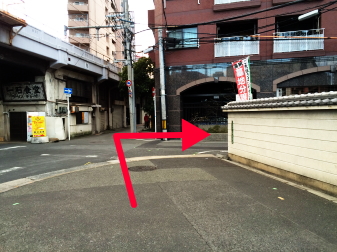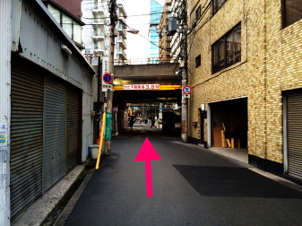 ↑中崎町駅を出てすぐの道を右へ進んでください。
