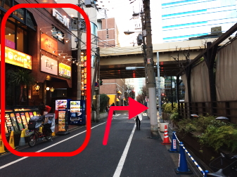 3.前方に見えてくるLUCUAの手前を右に曲がります。