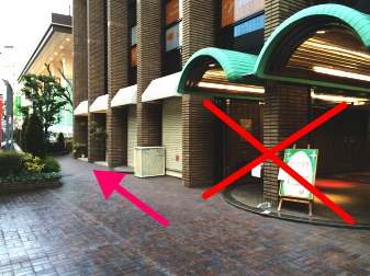 ↑右手に見える一つ目の入り口を超えて奥にある2つ目の入り口に進んでください。 ※注意 建物に向かって右手にある一つ目の入り口からは大阪本院にご来院いただけませんので恐れ入りますがお間違えのないようご来院ください。